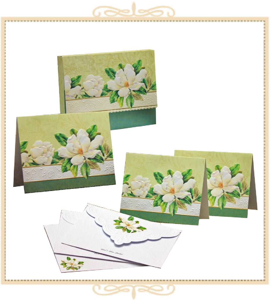Classic Carol Wilson Fine Arts embossed and die-cut boxed portfolio note cards featuring stunning white magnolia blooms.