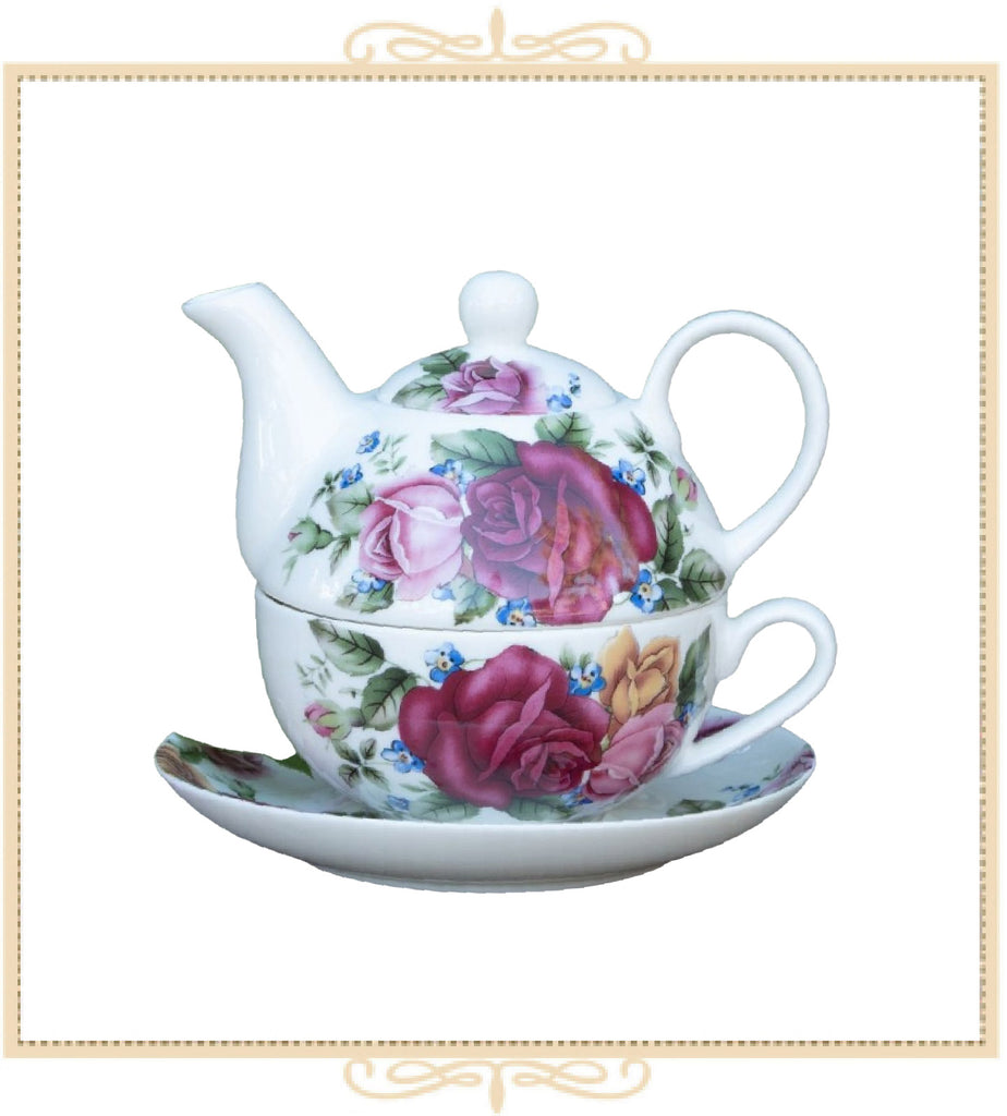 Stacked Teapot with Cup Saucer. Fine Porcelain