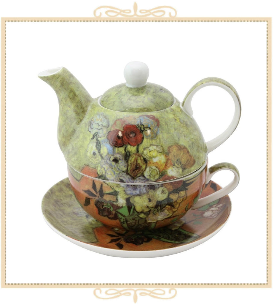 Stacked Teapot with Cup Saucer. Fine Porcelain