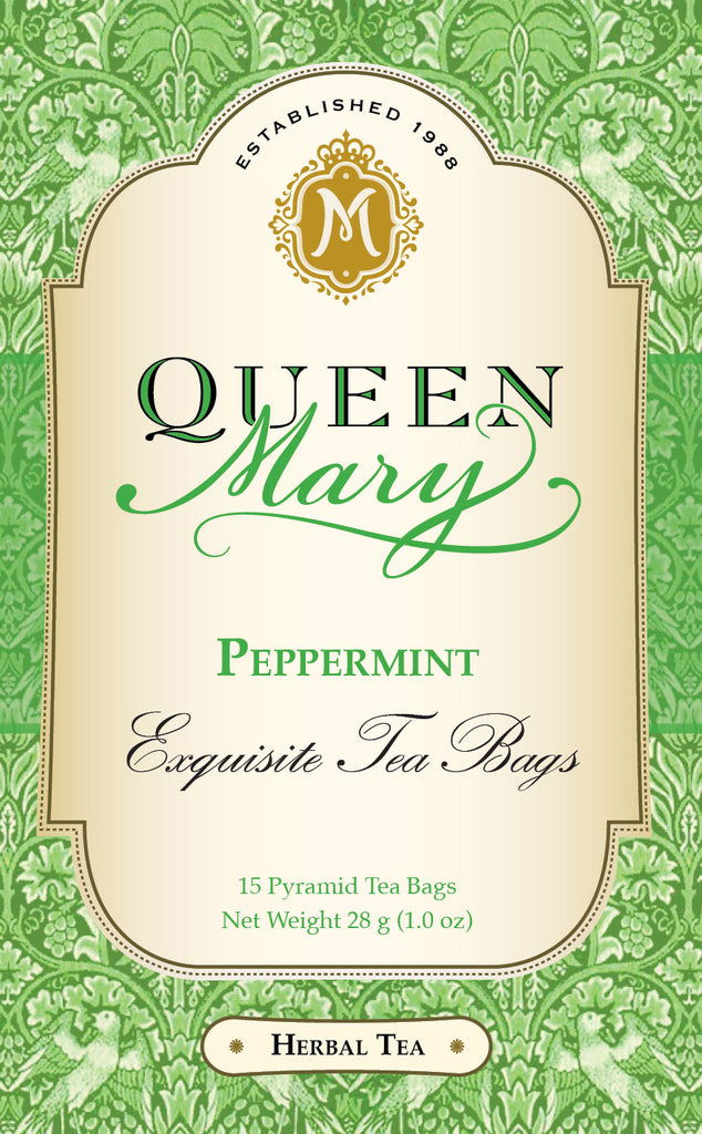 INTRODUCING Exquisite Tea Bags - 15 pyramid tea bags sold in signature Queen Mary gold embossed tin.