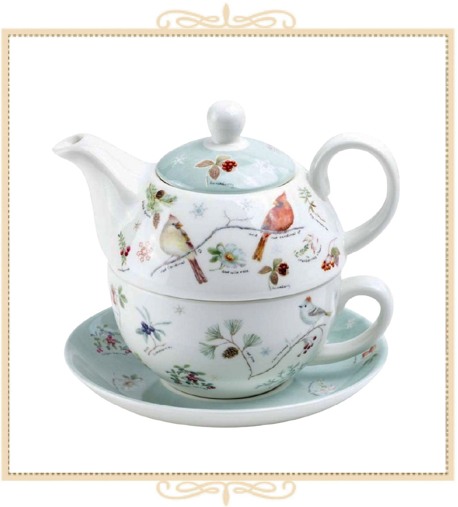 Stacked Teapot with Cup Saucer. Porcelain, Gold Trimmed